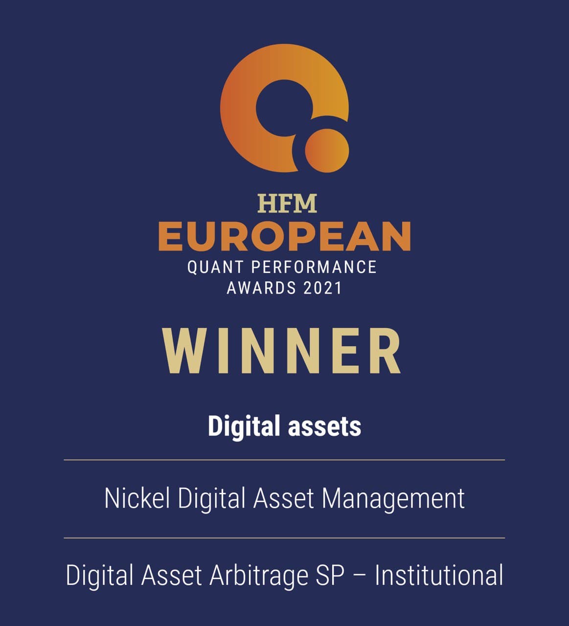 Winner of the HFM European Quant Performance Awards 2021 in the Digital Assets category. Digital Asset Arbitrage was recognized as the best performing quant digital assets fund in Europe.